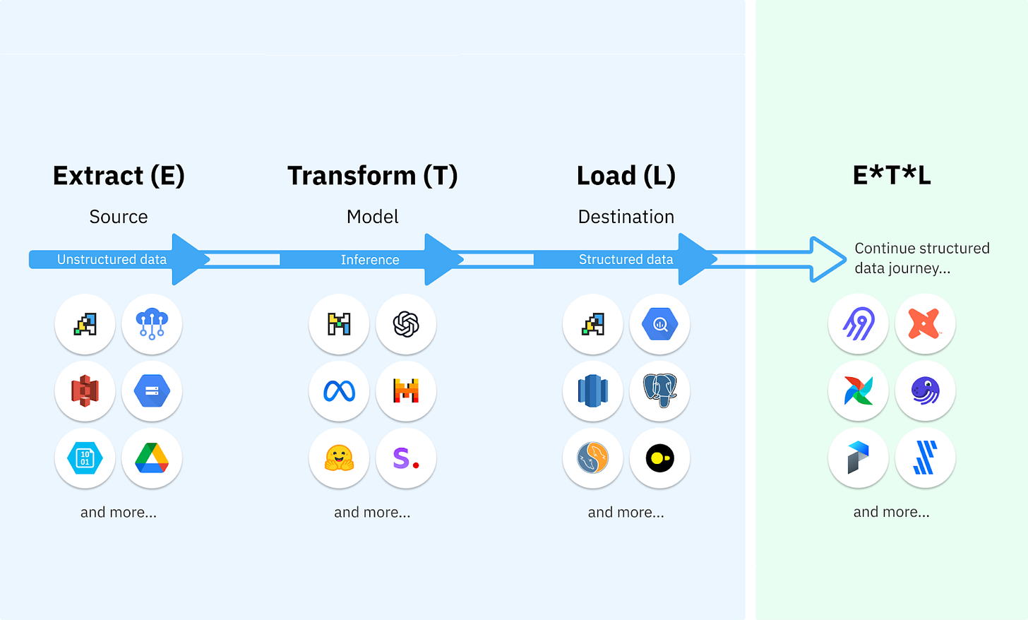 It combines the power of AI with traditional data engineering to extract, transform, and load data from diverse sources and formats.