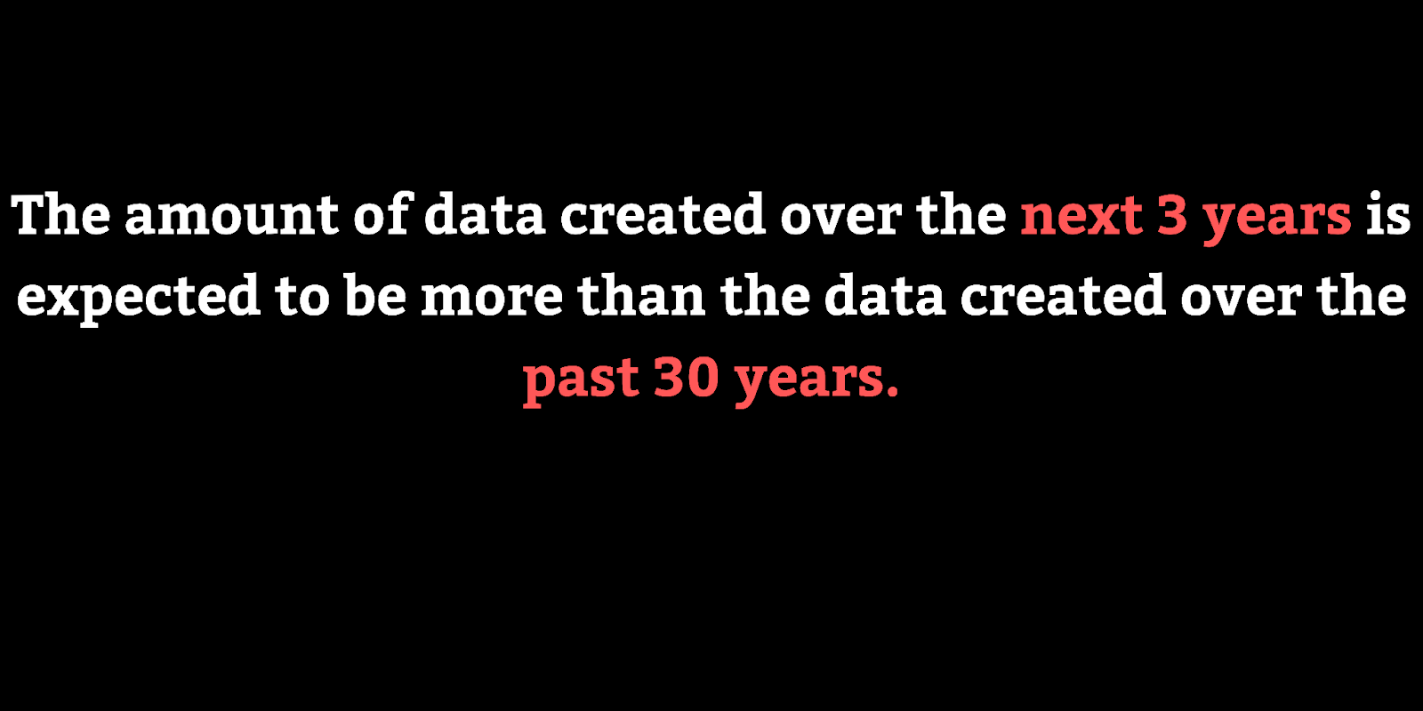 The International Data Corporation (IDC) estimates that by 2025 the sum of all data in the world will be in the order of 175 Zettabytes (one Zettabyte is 10^21 bytes). Most of that data will be unstructured, and only about 10% will be stored. Less will be analysed.